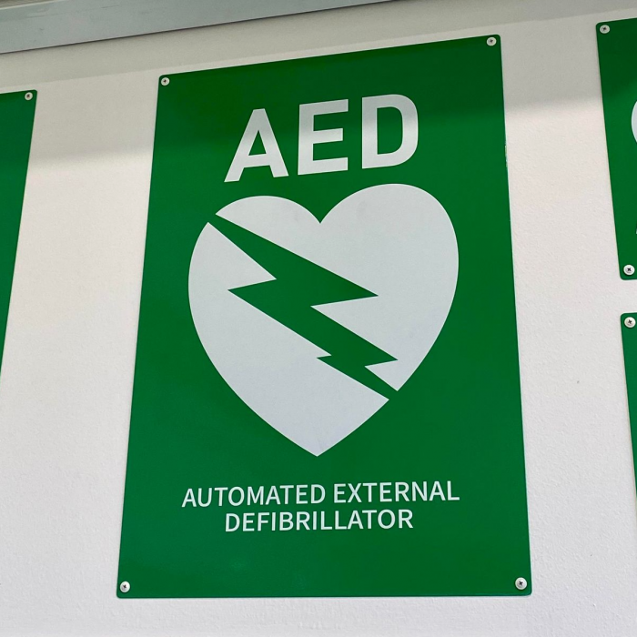 Extra large Flat Green Metal AED wall sign to go above your defibrillator cabinet or bracket. Made from Metal, this sign will stand the test of time and not break or crack as many thin plastic ones can.